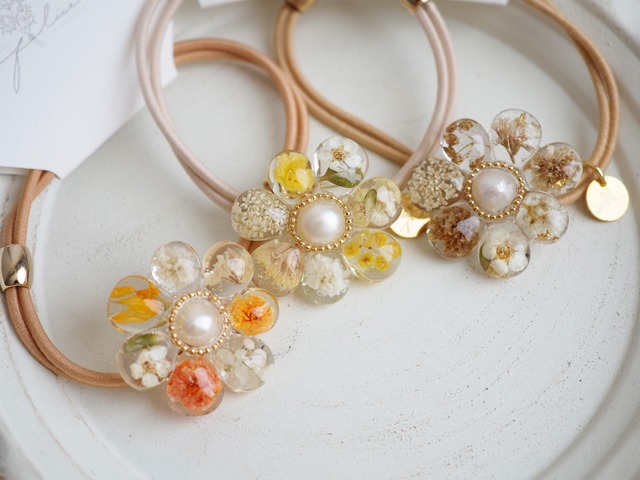 ◾︎商品説明 お花をモチーフとしたヘアゴムです。 1粒1粒パーツを制作してお花の形に見えるように工夫しています 可憐なデザインは、 普段使いから特別なお出かけまで幅広く活躍します! 髪をしっかりと束ねながらも、 優しい印象を与えてくれるアイテムです。 お花の種類や色合いは、多彩でお好きなスタイルに合わせて選べるのが魅力。 お子様と一緒に楽しむのもオススメです♡ ◾︎素材 レジン ゴム ◾︎価格 ¥2,600+tax ◾︎サイズ 全長約
